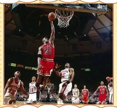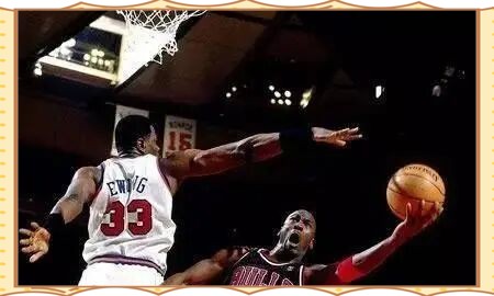 在乔丹回忆的那场纽约尼克斯与芝加哥公牛队的激烈对决中,尤因的一次传球失误,为乔丹创造了单挑的机会。乔丹运用巧妙的假动作骗过了防守他的奥克利,面对补防的尤因,他身体一撞即起,右手单手劈扣,得分震撼了麦迪逊广场花园球馆的每一个角落!
