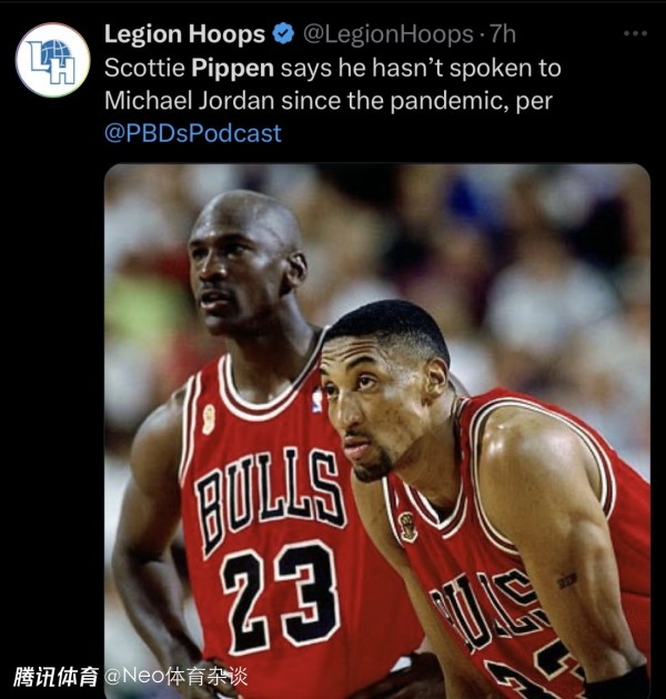 公牛传奇皮蓬昨天在一档播客节目中谈到他和乔丹的关系以及近年来关系不佳的原因: