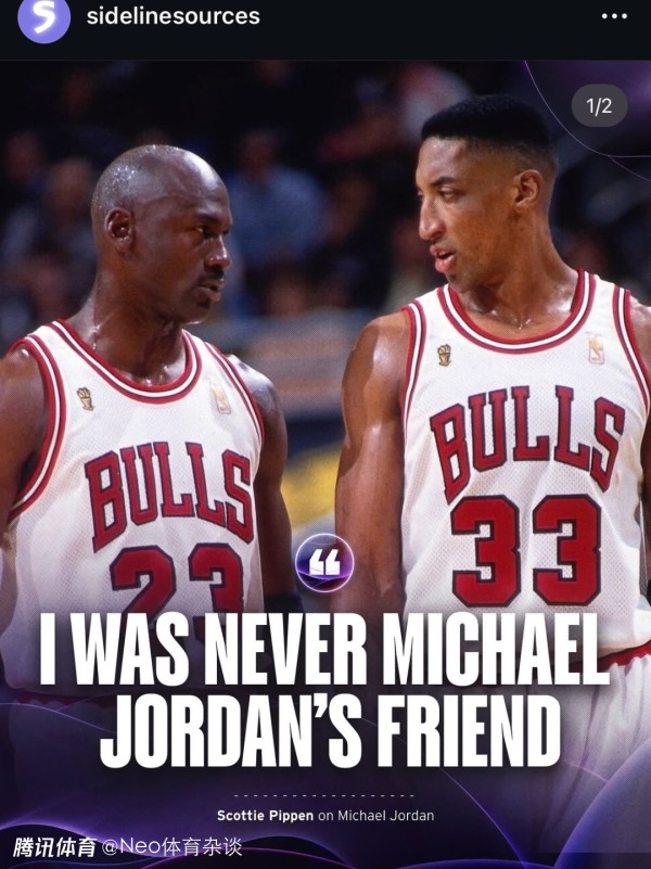 然而,据皮蓬所言,他和乔丹从来不是朋友。