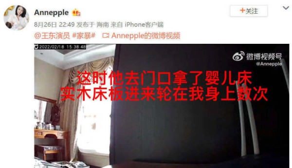 原标题:演员王东被妻子发视频控诉家暴 男方为过激行为致歉
