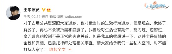 演员王东发文承认家暴:犯错就要认,接受大家的批评