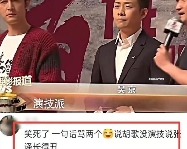 这种不会说话的毛病,在社交场合更是灾难。有一次活动,吴京当着胡歌和张译的面,非要点评一下这俩人。他指着胡歌说这是“帅”,又指着张译说那是“演技派”。
