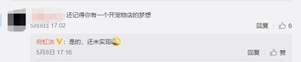 但倪虹洁对此的心态不错,她曾透露过演戏只是兴趣,结婚后也是为了能够多照顾家庭,所以自己选择减少了拍戏的数量。5月8日她在社交平台上晒出自己新收养的宠物的照片,和粉丝回复时她透露自己的梦想就是开一家宠物店,但是可惜到现在都还没有实现。
