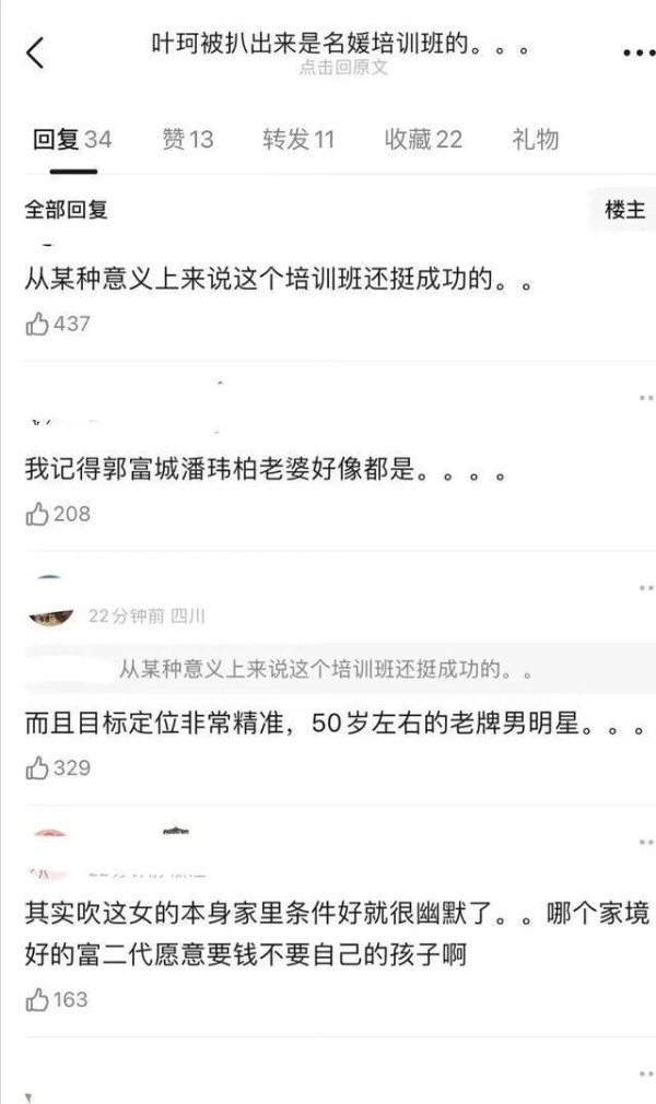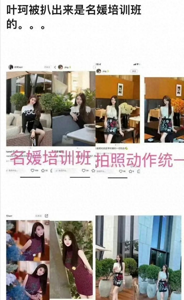 更令人感到吃惊的是,有网友发现,叶珂似乎是著名的"名媛培训班"的一员。这个培训班声称能够将普通女性打造成社交平台上的红人,引起了人们的广泛质疑。