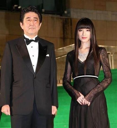 日本首相安倍晋三现身东京国际电影节,与日本女星栗山千明合影。