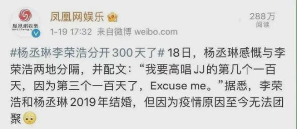 这两人变成了天上的牛郎织女,隔三岔五就在微博记录两个人分开的时间,50天了,100天了,200天了,网友也跟着起哄,一起陪他们数着可以见面的日子。