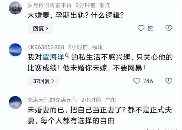 在这场风波中,我们不难发现舆论场中存在的偏见和矛盾。一部分人怀疑未婚妻是故意抹黑覃海洋,可能别有用心。另一部分人则对覃海洋的行为感到愤怒和失望,认为作为公众人物,他应该更加注意自己的言行。这种矛盾的心理在网友们的评论中表现得淋漓尽致。