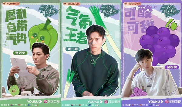 一组充满趣味的素菜性格海报更凸显了每个人的不同性格,敏感的陈如意像洋葱,越品越上头;元气战思齐就像胡萝卜,脆爽活泼;俏皮可爱的张紫茜就像卷心菜,八面玲珑;成熟的张天宇像犀利的青椒,自带气势;氛围王者张一鸣像小葱,有他在永远不会冷场;书生气十足的汤忆俊其实更像是一颗可酸可甜的小葡萄……在这场即将启程的探爱之旅中,每个人都已做好准备,满怀心意,为爱入局。