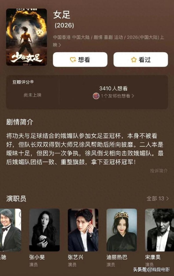结语:从官宣时的生日许愿,到杀青时的全员坚守,《少林女足》承载的不仅是一部电影的诞生,更是周星驰对喜剧类型的持续探索与对女性力量的银幕致敬。当 “少林功夫” 遇上 “女足精神”,这场笑泪交织的热血征程,或许正如影片中那句台词所言 ——“只要你不放弃,梦想就永远不会放弃你”。接下来的后期之路,让我们静待 “峨嵋队” 在大银幕上踢出属于自己的精彩。