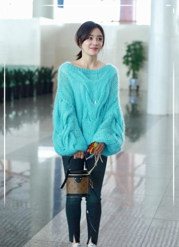 近日袁姗姗现身机场,身穿一件天蓝色的针织毛衣,十分甜美,虽然是短发但是扎起了低马尾,中分碎刘海很自然,下身穿着灰色牛仔裤,从全身来看真的很瘦,并且腿也很纤细,十足女神范