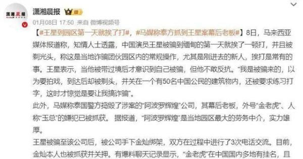 马媒披露:绑架王星的公司已查明,主犯 “金老虎” 已被警方抓获