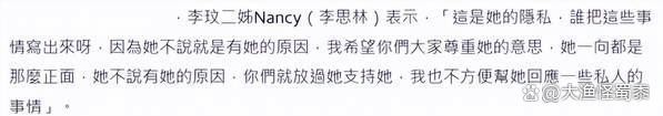 这个消息一经曝光,立刻引发各大媒体的争相报道。因为不忍李玟独自面对舆论压力,亲姐现身声援妹妹。李玟的二姐李思林表示:"这是她的隐私",不希望媒体过分渲染