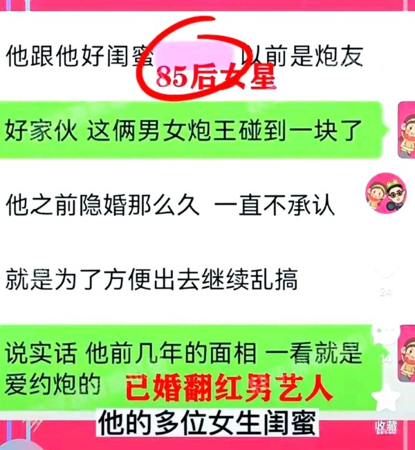 对于这位男星的女闺蜜,懂瓜呱仅简单透露她是一位85后的女明星。然而,在懂瓜呱所爆料的聊天记录中,却透露出一丝不寻常。当提及二人时,懂瓜呱用了“两个男女炮王碰到一块了”这样的别称,这无疑引发了人们的猜想。这样的称谓似乎暗示着这两位男女明星在私生活方面都存在某些问题,其中不乏八卦传闻。此外,懂瓜呱在爆料中还警告该男星,若不收敛,其翻车只是时间问题。