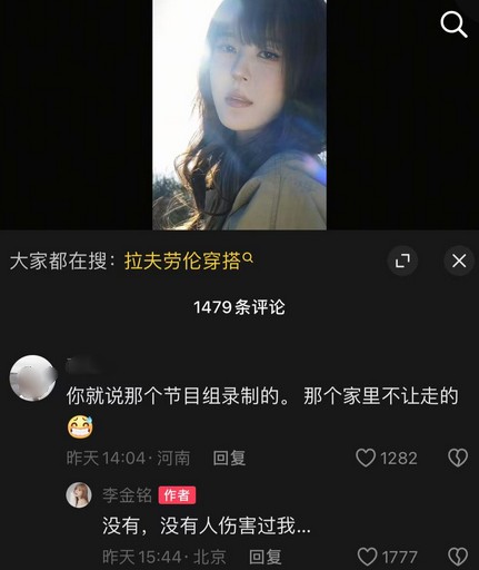 视频中,39岁的她打扮精致,状态大好。有网友在评论留言“你就说那个节目组录制的,那个家里不让走的”,李金铭回复:“没有,没有人伤害我。”