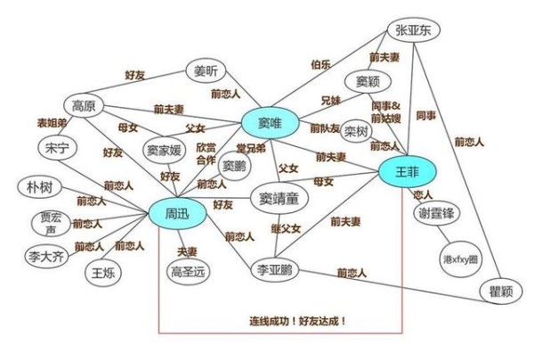 但是王菲和周迅的关系并不只是普通的情敌关系,还存在潜在的妯娌关系。周迅的初恋男友是窦鹏,而窦鹏是窦唯的弟弟,如若当初王菲窦唯没离婚,周迅窦鹏没分手,那两人就是妯娌关系了。而周迅和窦唯的妻子还是好朋友,和高原的表弟宋宁也谈过一次,和窦唯的妹妹窦颖的前老公张亚东也谈过一段时间,巧合的是张亚东还是王菲的音乐制作人,绕来绕去都是一个圈子也是缘分。