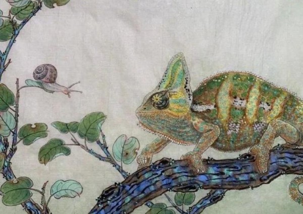 夏雨其实不仅楷书写出了艺术美,他的绘画功底也是非常的深厚,大家看到了上面的这幅作品了吧,只见画中有一只变色龙还有一只蜗牛在树枝上,看到这样的景色以后大家是不是觉着非常的生动呢?而这幅画也是出自夏雨之手,欣赏完夏雨的书法和绘画以后大家是不是感受到了夏雨艺术的天赋非常的高呢?你认为夏雨的书法和绘画水平怎么样?能达到专业的级别吗?