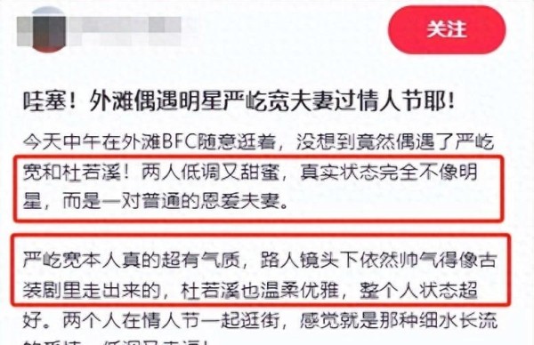 元宵节刚过,情人节氛围渐浓。演员严屹宽与妻子杜若溪在上海约会,被网友目睹,他们的甜蜜互动就像偶像剧一样。