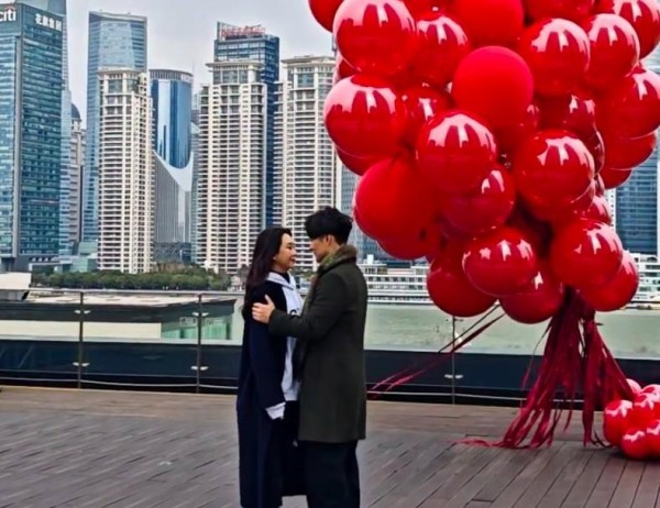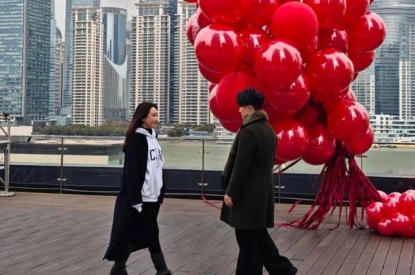 严屹宽陪老婆上海过情人节,当众对视拥抱,网友偷拍反应成亮点