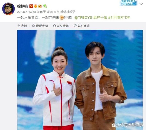 中国奥运*梦幻联动,徐梦桃青年节晒与易烊千玺合影,他们之间曾有过哪些梦幻联动?张博恒易烊千玺同框,跨界梦幻联动,好惊喜哇 易烊千玺张博恒握手