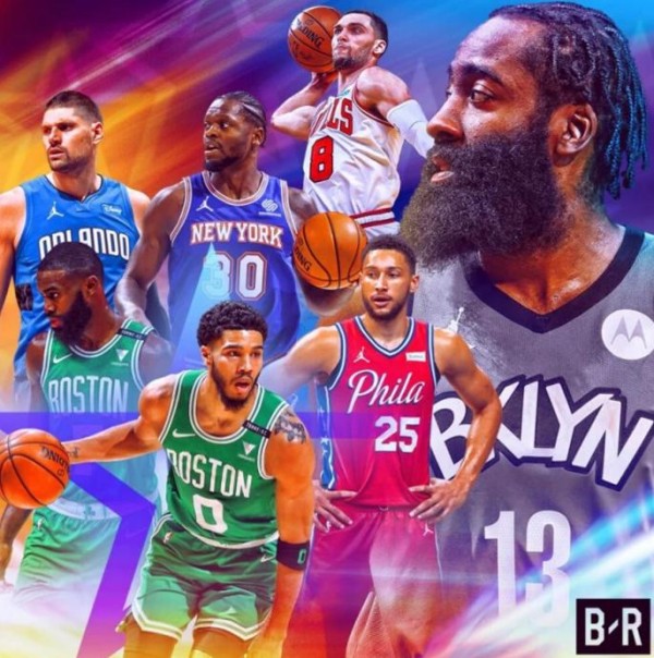 东部:哈登、兰德尔、塔图姆、杰伦-布朗、拉文、西蒙斯、武切维奇