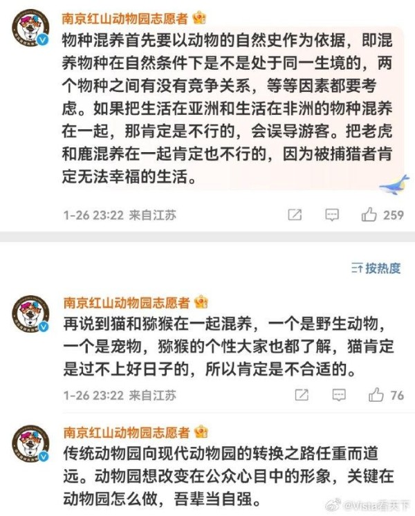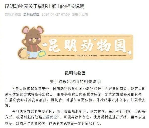 目前,动物园方面也连续就“猴猫混养”发布通报。