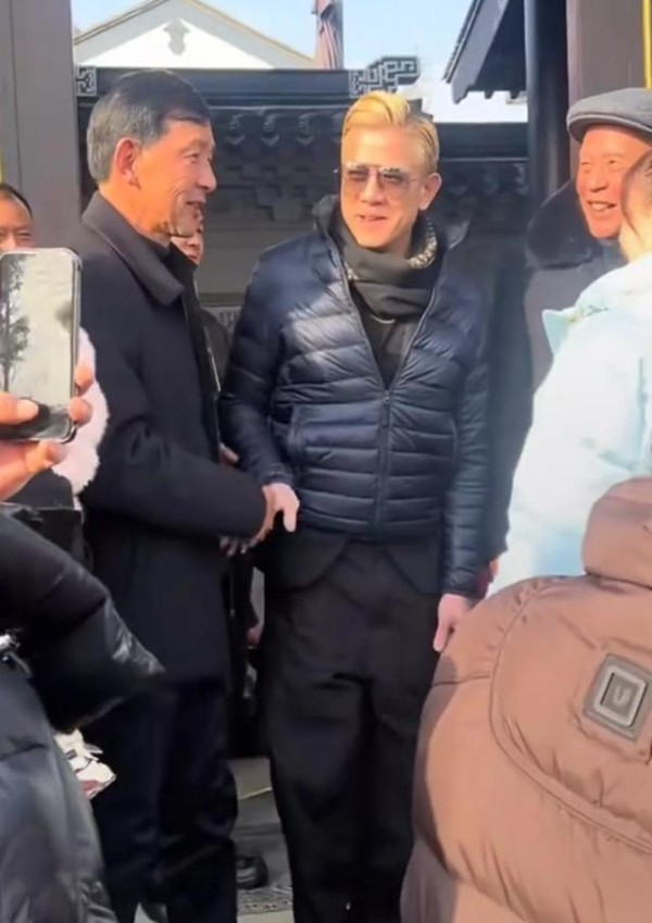 当天,他穿着一件时尚的羽绒服,头发染成了亮眼的黄色,还戴着墨镜,整个人看上去还是那么有活力。