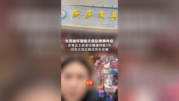 女孩被怀疑偷文具坠楼事件后 涉事店主前妻自曝遭网暴3年 同名文具店被送骨灰花圈:这简直是无妄之灾!