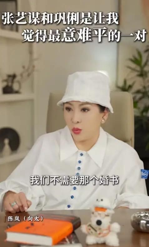 在和巩俐稳定之后,他又回到了张艺谋那边。张艺谋简直就是个纯爱主义者,他说他们之间不需要结婚证,也许向太能懂张艺谋,但巩俐却真的不懂。