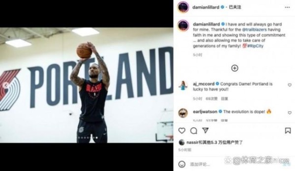 而在今年的7月份,利拉德和开拓者完成续约之后,便第一时间更新了社交媒体,他晒出多张自己以及自己家人的照片,并配文:“我自始至终都为我的球队付出一切。很感激开拓者信任我,认同我,这让我能够为我世世代代的家人提供生活保障(take care of generations of my family)。”