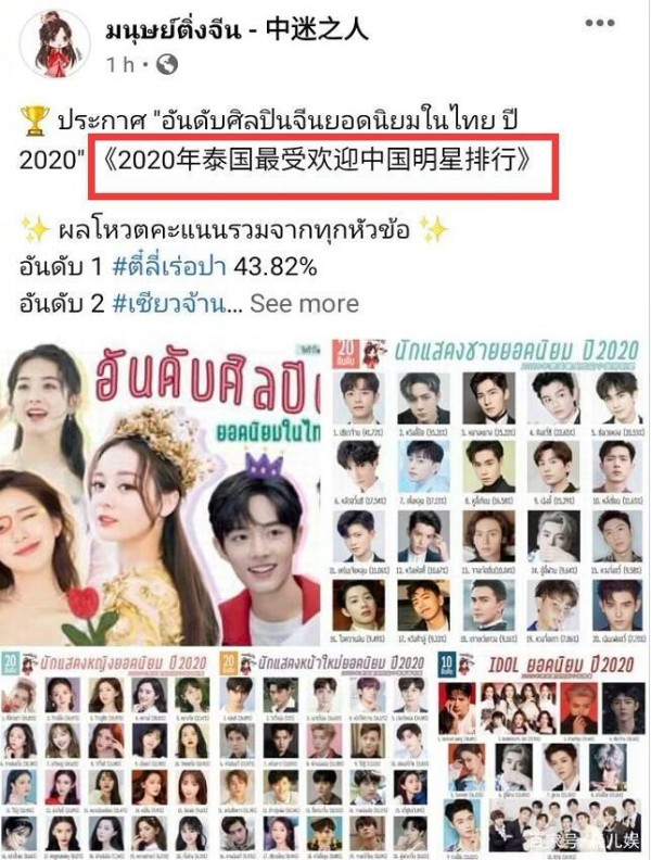 大家都知道韩国的粉丝追星非常狂热,相比韩国粉丝来说,泰国的粉丝们热情也非常的高,大家应该还记得在《陈情令》在海外播出期间,海外唯一的见面会就选择了泰国吧,当时的盛况相信很多人都还记忆犹新。2020年过去了,泰国网网友选举出了2020年泰国最受欢迎中国明星的,大家一起来看看吧。