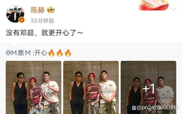 邓超晒与鹿晗陈赫合照引热议鹿晗晒与邓超陈赫聚会合照!鹿晗红发站C位,网友:这状态绝了!