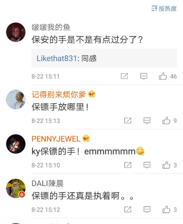 就连金小妹与男友分离的时候,保镖的手也一直锲而不舍的放在金小妹的腰上。许多网友在图片下评论保镖的手真是太过分了!