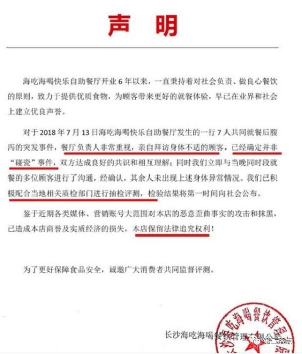 其实说开了,并不是什么大事,无非是几个人吃坏的肚子,谁还没在餐厅吃坏过肚子啊。但是事后的餐厅声明就不由得耐人寻味了。