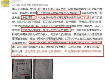 近日,杜海涛餐厅被网友爆料,该网友称,他们一行七人在上海“海吃海喝”快乐自助餐厅用餐后,均发生腹绞痛、恶心和拉稀症状,后经医院诊断为急性肠胃炎。目前质监部门已经进行抽检,检验结果会第一时间向社会公布。