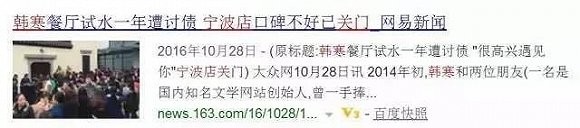 “国民岳父”韩寒的很高兴遇见你,三年开了60多家店,但部分店面刚开不久就曾面临讨债风波,无照经营等问题,使其“国民岳父”的形象受损不少。