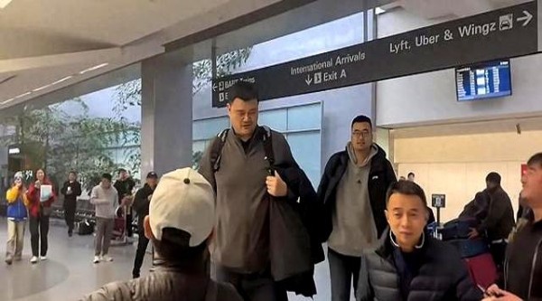 姚明赴美参加全明星,45岁发福,回头率极高,和美女合影显得很霸
