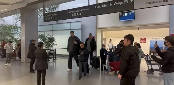 姚明退了篮协主席的位,最近鲜少露面。这次他现身旧金山机场,打扮低调,一身运动装加个背包,跟个普通人似的,看不出他那昔日的篮球明星范儿。可就算这样,他那大高个子和魁梧身材还是让人一眼就能认出来。