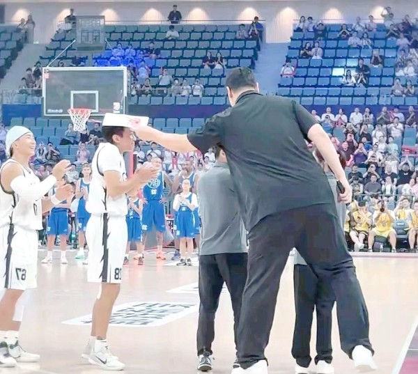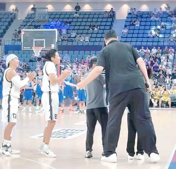 随着姚明朝他们走来,刘畊宏误以为姚明是向自己走来,因此他停下了鼓掌,眼中充满期待。然而,姚明却径直走向了邓超,手里拿着一块小板子,轻柔地拍了一下邓超的后脑勺,动作中透露出亲密,显然两人关系非同寻常。与邓超亲昵互动后,姚明才转向球场中央开始发表讲话。