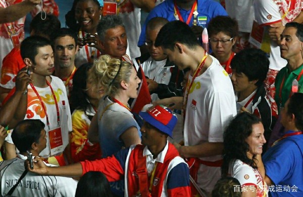 在2008年北京奥运会闭幕式之时,劳伦-杰克逊走到姚明面前,深情凝望,并且双手高举,索要拥抱。