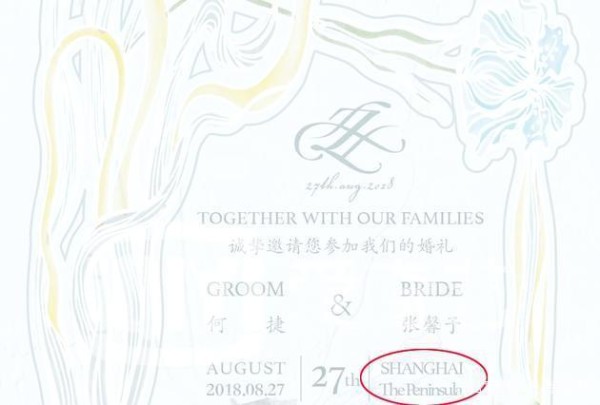 8月27日,也就是今天,是张馨予、何捷婚礼举行的日子。今天一大早,就有媒体探访到张馨予、何捷婚礼的现场。从请柬邀请函上不难看出,在何捷、张馨予的大名之下,赫然写着上海半岛酒店几个英文大字。