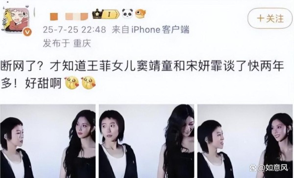 窦靖童是王菲的女儿。她出道后就一直很“有个性”。她之前没有公开过恋情。宋妍霏因为和张一山的恋情被很多人知道。两人 2020 年分手时也引起了讨论。宋妍霏的名声一度受到影响。这次她们传出恋爱,网友最大的疑问是:“她从张一山到窦靖童,选择伴侣的喜好变化太大了。”