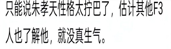 话说回来,F4其他三位成员也是real心累。明明可以其乐融融地回忆青春,偏偏要配合朱孝天演这出"塑料兄弟情"。有网友神评论:"建议他们下次合体改唱《熟悉的陌生人》"。这脑洞,我给满分!