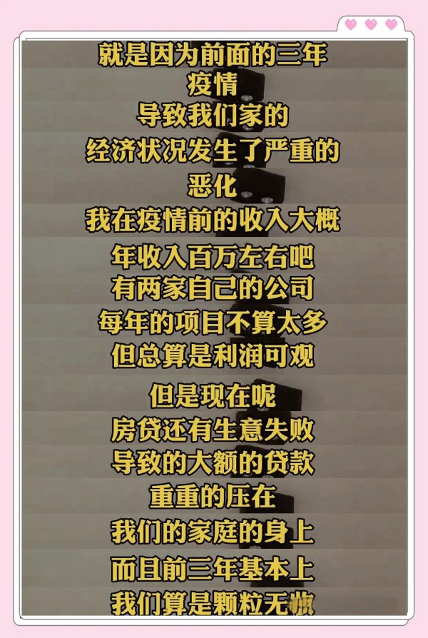 李洛伊的丈夫进一步坦白了他们婚姻破裂的根源—— 经济压力。他回忆道,他们相伴已近十年,期间他曾拥有两家公司,年收入可观。然而,近三年来生意每况愈下,房贷与债务的重担让他喘不过气来。洛伊虽也有自己的事业追求,但所处行业盈利艰难,她虽奋力挣扎,却也倍感疲惫。丈夫坦言,他深感洛伊已身心俱疲,对未来丧失了信心。