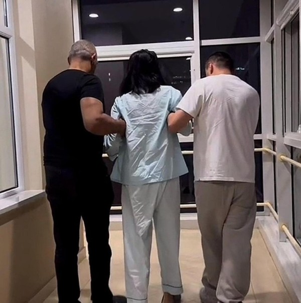 她由两位男士搀扶着,依依不舍地向粉丝告别。其中一位男士,从背影看,像是她那位外国籍的丈夫。而另一位男士,之前有人猜测是李洛伊的先生,但从体型和他们之间的互动来看,并非如此。