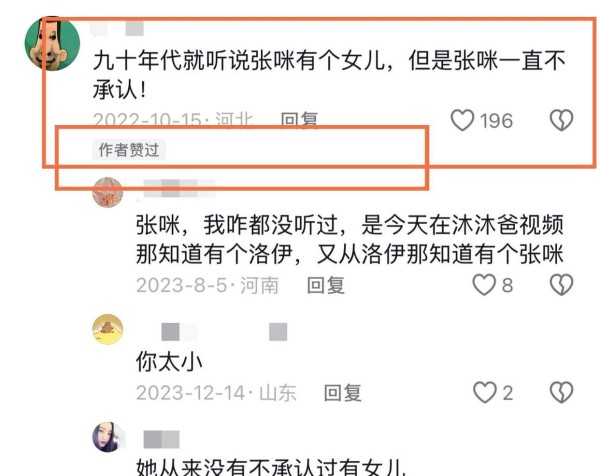 李洛伊的视频里,谈到了星二代的故事。评论区有人说,早在上世纪九十年代就听过张咪有个女儿,但她一直没承认。有意思的是,李洛伊居然还给这条评论点了赞。这点赞,似乎透露出她心里的一些想法。