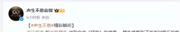 而汪苏泷也回应道:“你的歌艺实在是非常了不起,每一次的演唱都能触动人心。