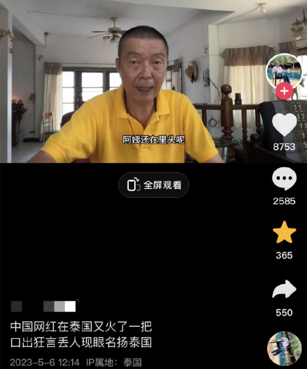 5月6号,一位来自泰国的华人于视频账号上特地分享了一个怒怼两人的视频,并在留言处暗讽:中国网红在泰国又火了一把,口出狂言丢人现眼,名扬泰国。