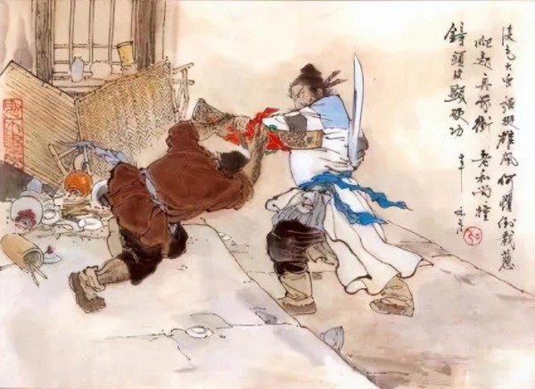据传,刘海龙在打架时颇有一套自己的“套路”。而牛二,此人行事风格可谓简单明了:撒泼、行凶、无理取闹。当他遇见杨志在卖刀时,先是装模作样地询问价格、尝试刀的锋利度,随后抓住杨志无法在现场进行“杀人不见血”的试验这一漏洞,竟强行抢夺杨志的刀。这种行径,无疑暴露了他泼皮无赖的本性。