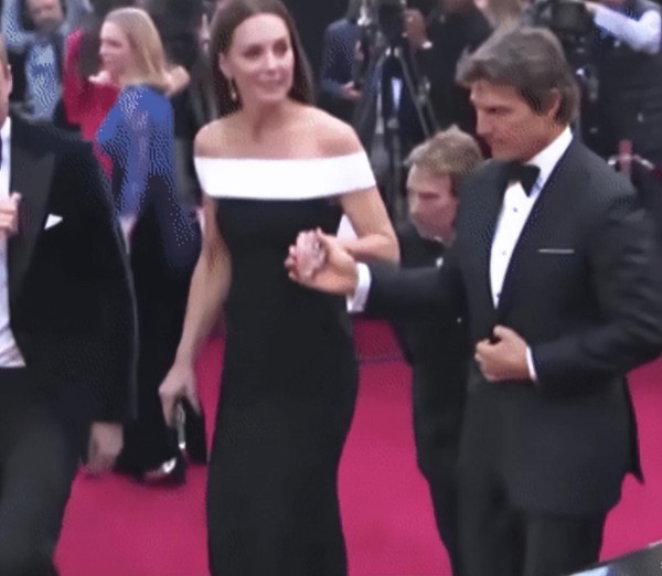 有次威廉和凯特参加《捍卫战士:独行侠》首映会,当凯特要上楼梯时,汤姆克鲁斯担心女方穿高跟鞋会走不稳,所以绅士地牵着她的手扶着她上台阶。