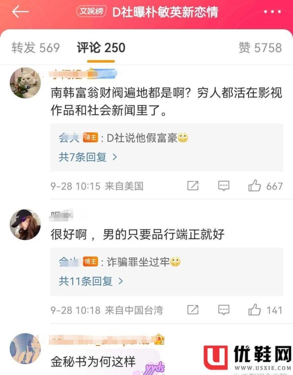 韩国知名女星的恋爱对象一般很少有类似情况,总是给人一种只为爱情的纯粹感。池晟和李宝英的爱情,宋慧乔和宋仲基的爱情,玄彬和孙艺珍的爱情,诸如此类等等。这次朴敏英的绯闻对象外形不佳,且被质疑富豪身份。如果姜先生没有被监禁的经历,或者他的外形不是很奇怪,也许会让人相信他们的感情,现在只能感到些许担忧。